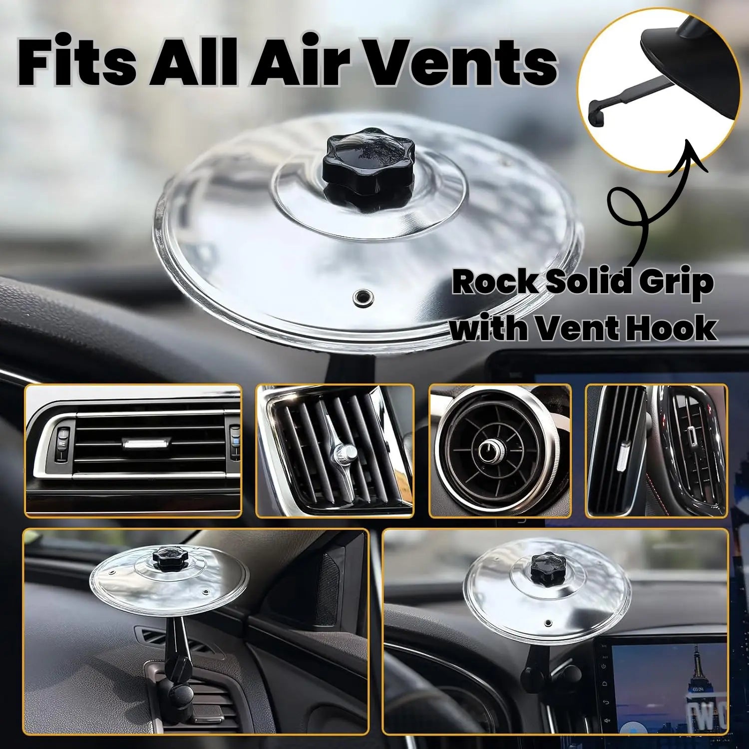 Clips securely onto most car air vents — no tools, no glue, no mess.